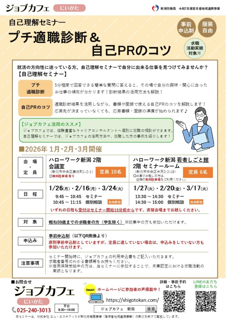 - セミナー開始時に、ジョブカフェの利用申込書をご記入いただきます。