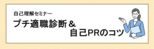▼自分のアピールポイントって何?逆質問と同紐づければいいの?と不安な方は、ジョブカフェの「プチ適職診断&自己PRのコツ」セミナーに参加しよう!